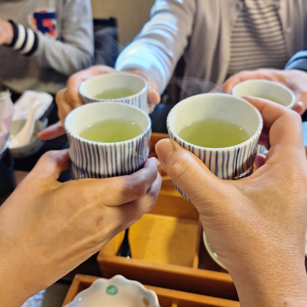 湯呑を持って、乾杯‼です。