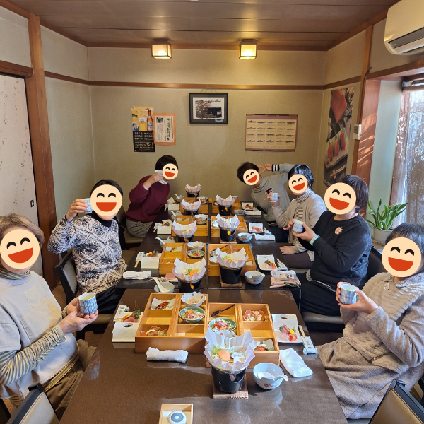 岐阜県本巣市の美術の森教室では、毎年恒例の新年会ランチへ。